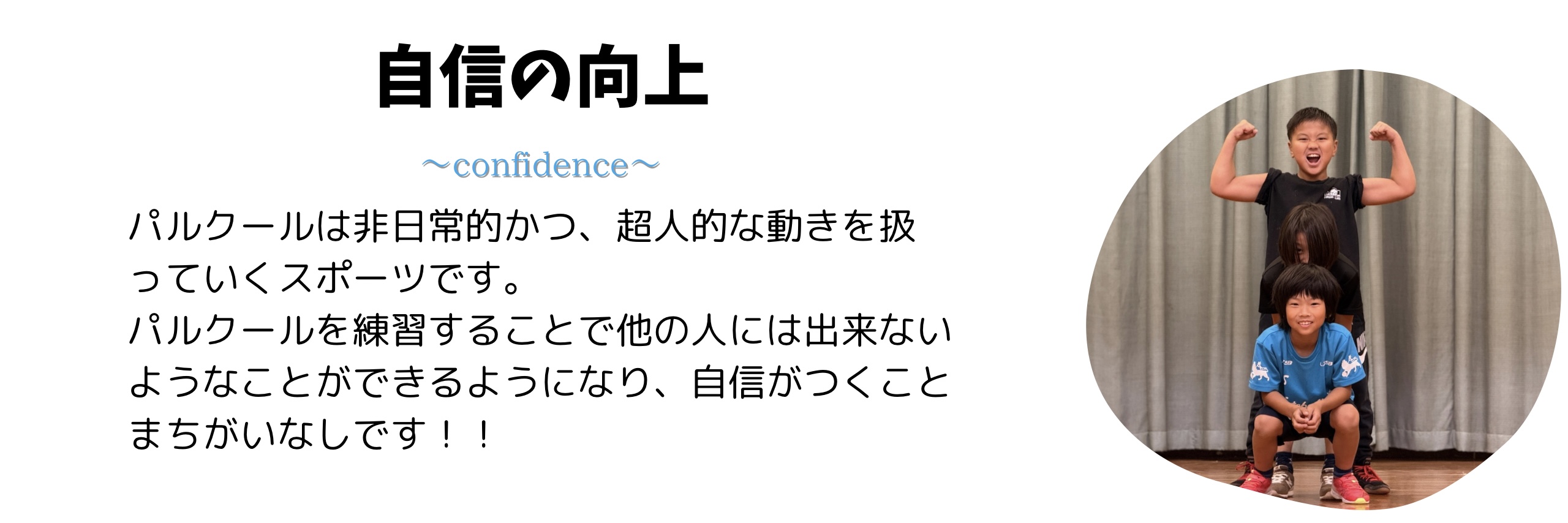 アクロバットやパルクールの習得が特に子どもたちの未来を切り開く力になると信じ、生徒一人ひとりに寄り添った丁寧で楽しい指導を行います。